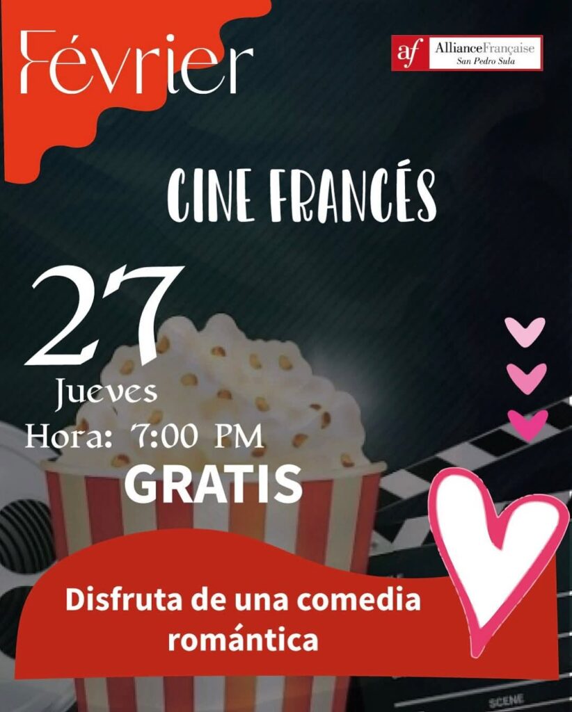 Las actividades de la Alianza Francesa en Honduras continúan el jueves 27 con la presentación de una comedia romántica del cine francés a las 7.00 pm.