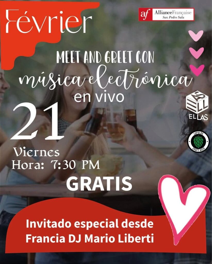 Las actividades de la Alianza Francesa San Pedro Sula para febrero 2025, inician el jueves 13 con un Apero de la Saint Valentin a las 7.30 pm.