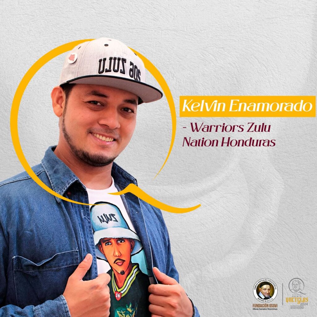 Los finalistas son Kelvin Enamorado, artista comunitario, graffitero, bailarín, músico, rapero y miembro fundador de Warriors Zulu Nation Honduras WZNH.