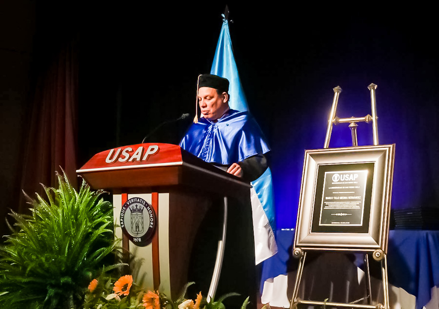 Por la tarde, el doctor Marco Tulio Medina, científico y vice rector de las relaciones internacionales de la Universidad Nacional Autónoma de Honduras UNAH, ha apadrinado la promoción.
