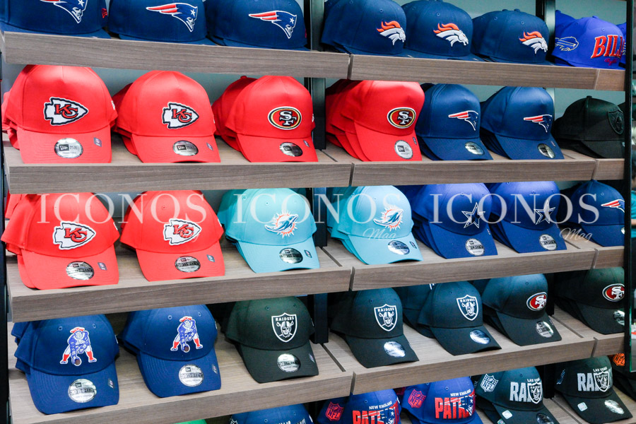 Los clientes del shopping center pueden adquirir gorras y conjuntos de las ligas icónicas estadounidenses National Football League NFL y Major League Baseball MLB.
