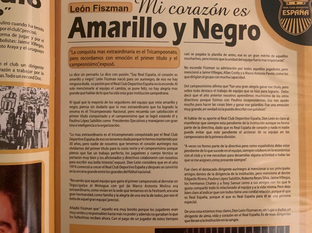 San Pedro Sula. León Fiszman y Jaime Villegas, una amistad arraigada a la sinceridad. La muerte del heredero del legendario almacén El Récord, tiene consternadas a muchas familias y personalidades de San Pedro Sula. Uno de ellos es el siempre mundialista España 82.