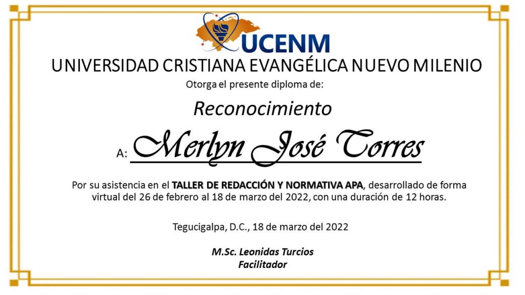 Tegucigalpa. Los estudiantes de la carrera de licenciatura en Psicología de la Universidad Cristiana Evangélica Nuevo Milenio UCENM Honduras han recibido su reconocimiento del taller de redacción y normas APA.