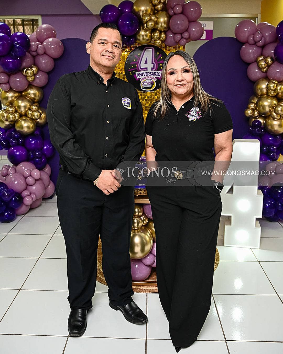 La estancia ha sido decorada con mesas cocteleras y globoflexia que ha destacado una paleta de colores que incluye morado y dorado.