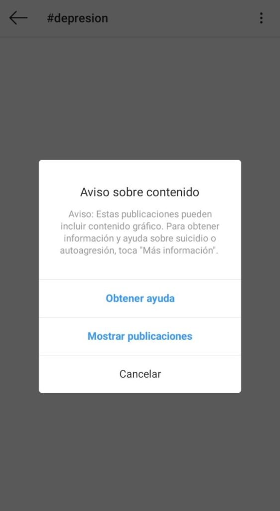Instagram ha incluido una especie de centro de ayuda para aquellos que están atravesando un momento de depresión, el cual se activa al realizar una búsqueda con el hashtag #depresión.