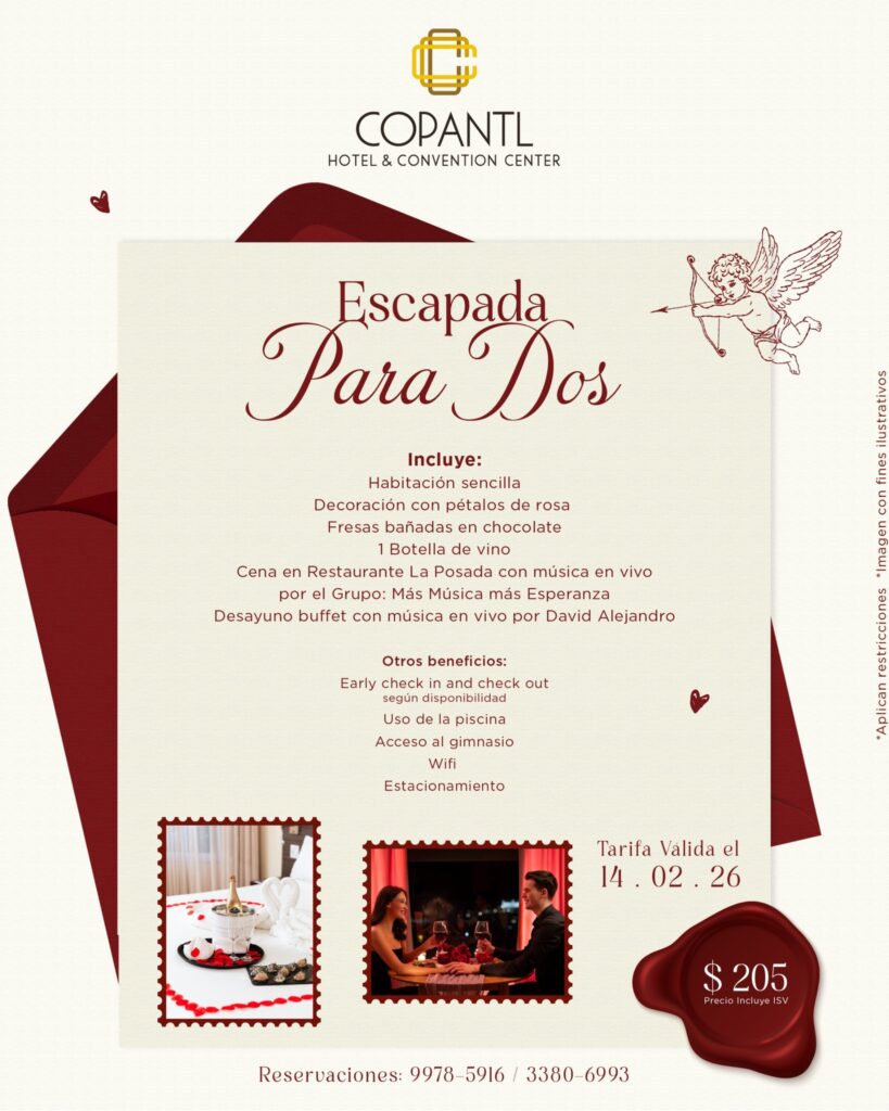 San Pedro Sula. El hotel Copantl Honduras le hace la invitación a celebrar el Día de San Valentín 2026 en un ambiente diseñado para compartir con esos seres especiales y amados.