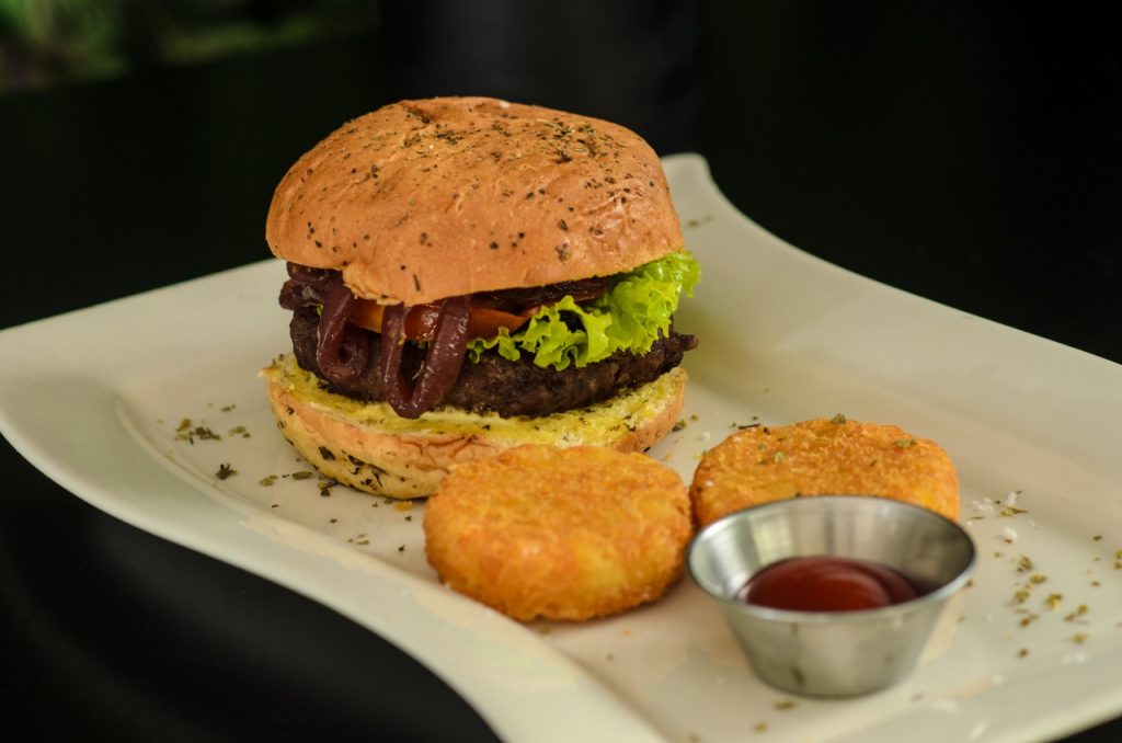 Como plato fuerte la hamburguesa con carne 100% Angus, acompañada con una ensalada mix fue mi mejor opción, pero el choripán también es exagerado.