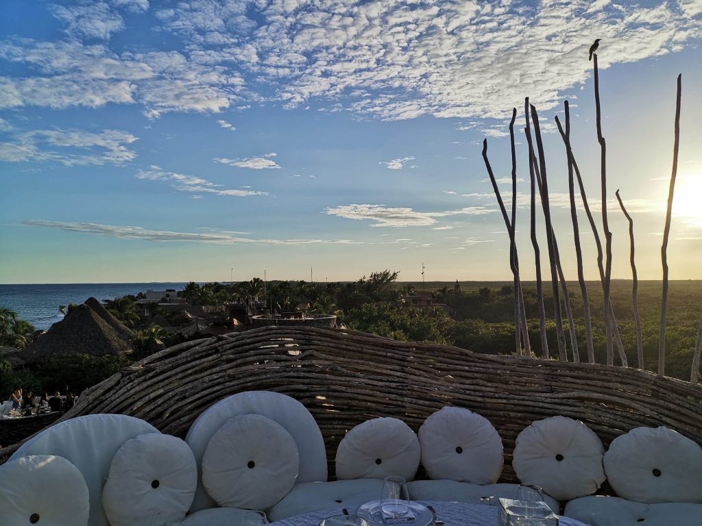 Por la tarde fuimos a conocer el espectacular hotel Azulik Tulum, un lugar único en todas sus formas, súper ecológico y con las mejores vistas de la jungla y el mar de la Riviera Maya. Haciendo reservación con tiempo, se puede disfrutar de una elegante cena en uno de sus “nidos” y apreciar el increíble atardecer.