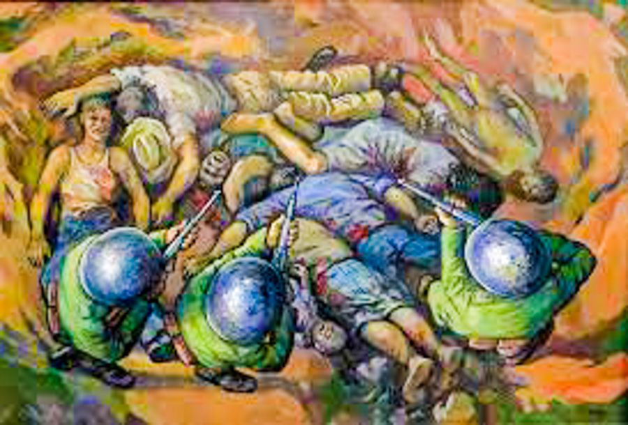 También, Álvaro Canales incorpora la crítica política en su arte, plasmando las situaciones de lucha social del momento en murales.