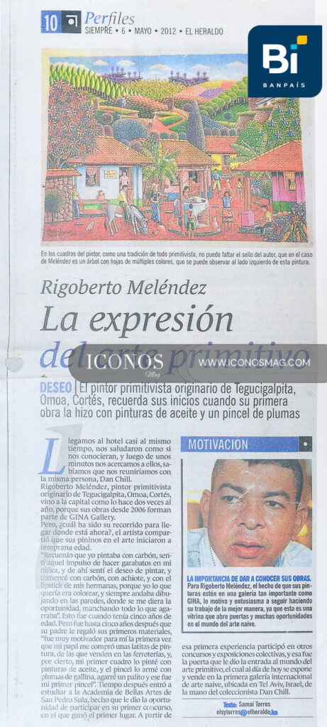 Tegucigalpita, Omoa. Rigoberto Meléndez lleva más de treinta años en un mundo artístico que no le ha hecho justicia a su talento ni le ha reconocido su calidad como maestro del pincel y el arte primitivista.