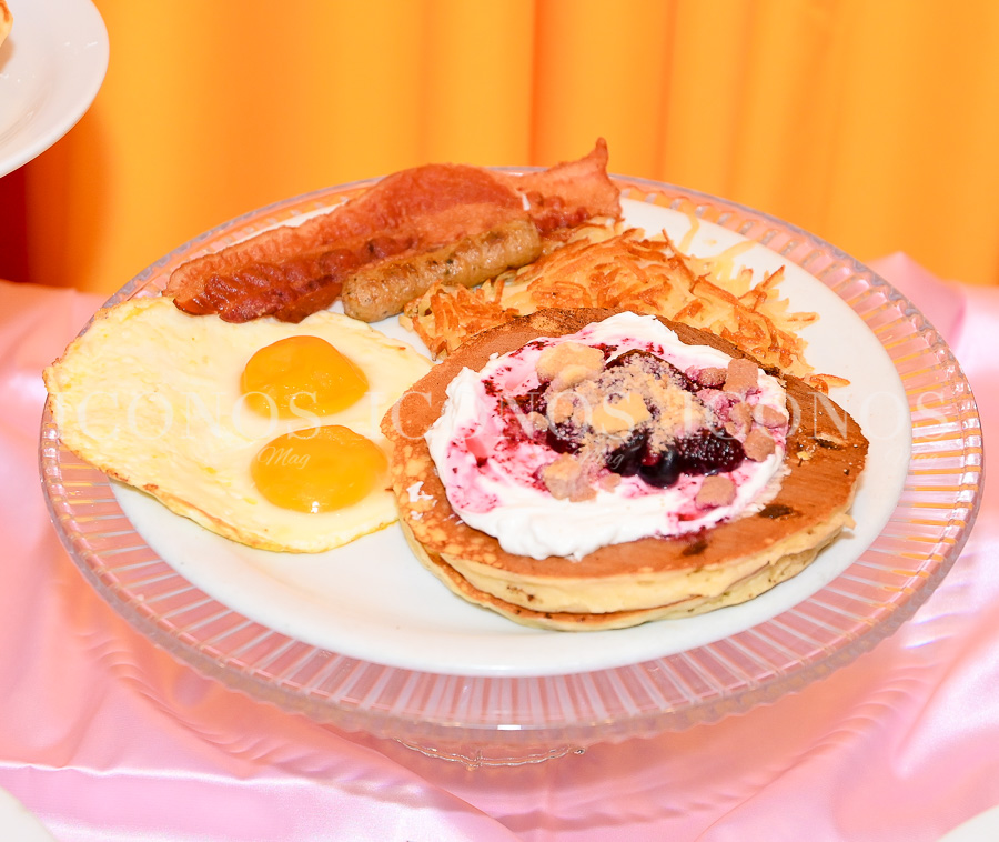 El tres leches está elaborado con una fusión de chocolate blanco, fresas, salda de helado de vainilla sobre los esponjosos pancakes que sirve el restaurante.