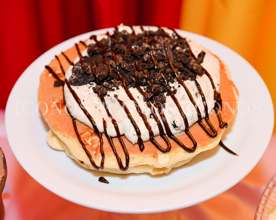 Para quienes prefieren lo dulce, se ha creado el cookies & cream, panqueques dorados y esponjosos, roseados con chispas de chocolate blanco y una cama de galleta oreo y chocolate.