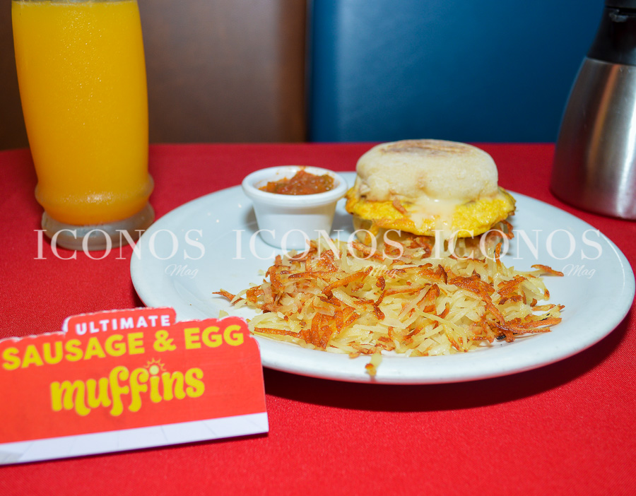 The ultimate sausage & eeg, es un muffin inglés con salchicha, huevo y queso derretido, se puede acompañar con papas hashbrown o francesas.
