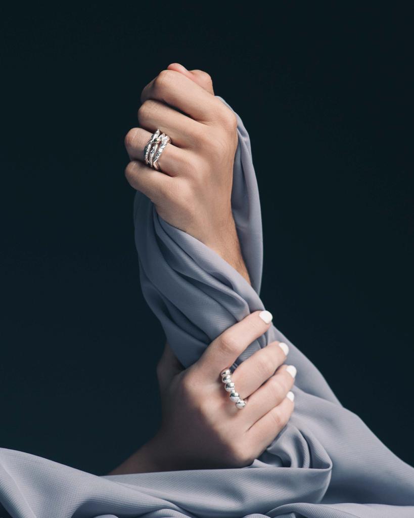 Junto a ello, presentará la serie de anillos de oro, plata y plata negra que fueron publicados en la revista Vogue Británica en 2019, la cual fascinó como alegoría a las etapas de la vida… de la obscuridad a la realización.