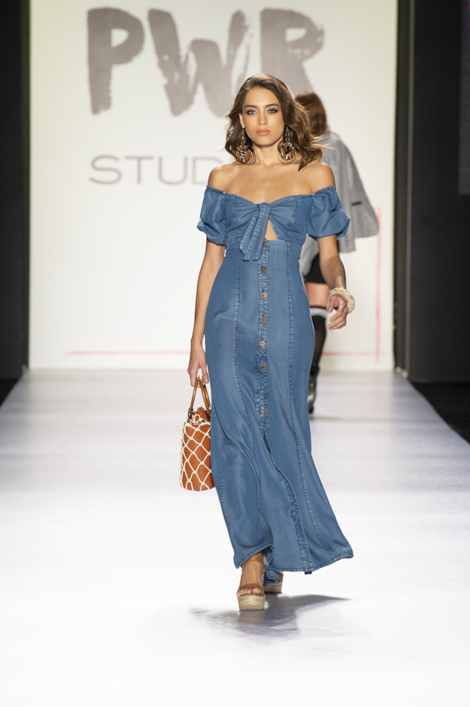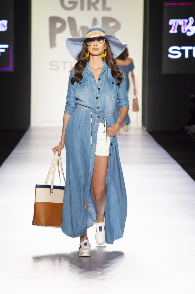 El denim o mezclilla, sigue siendo distintivo de la marca. La ex Señorita Colombia Laura Gonzales Ospina, fue de las modelos que lució conjuntos en esta textura, distintivo de Studio F Colombiamoda 2018 Foto Inexmoda