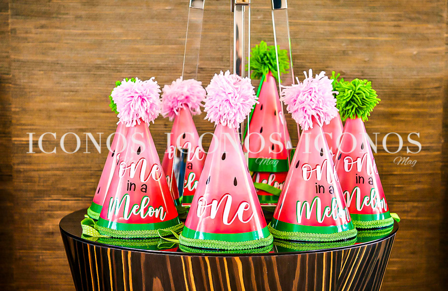 Los padres de la bebé Fabiola Matamoros de Galeano y Alejandro Galeano han preparado la primorosa celebración con temática de Melon party.