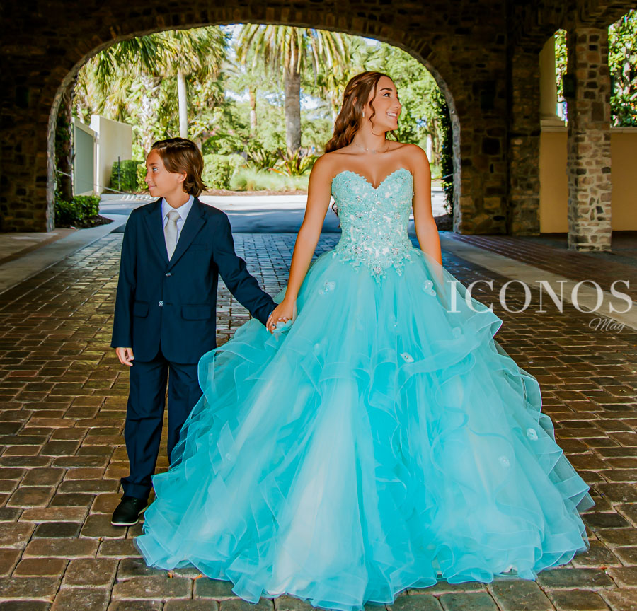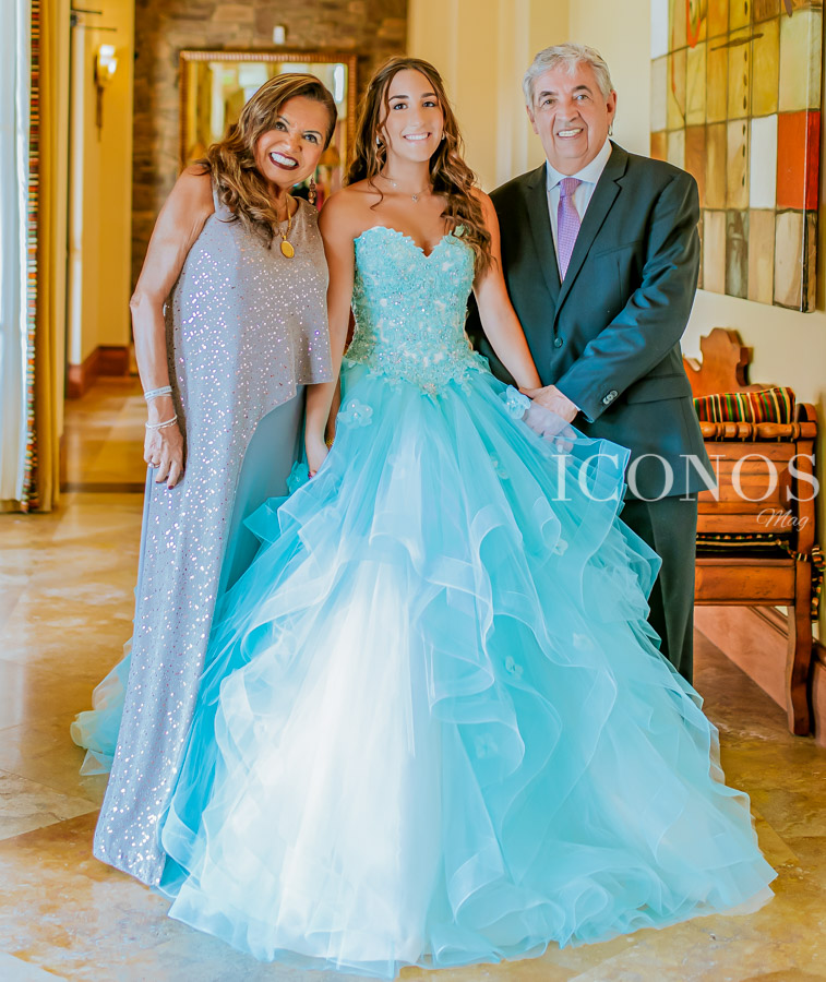 Ataviada con un opulente diseño en tono azul ártico, la quinceañera ha sido la más bella de la celebración.