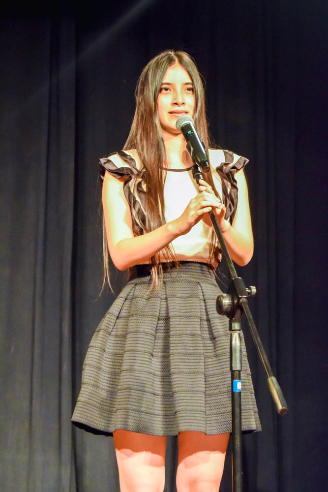 Minutos después de su participación, la estudiante Mayang Cagujas interpretó When I was your man, del artista hawaiano Bruno Mars.