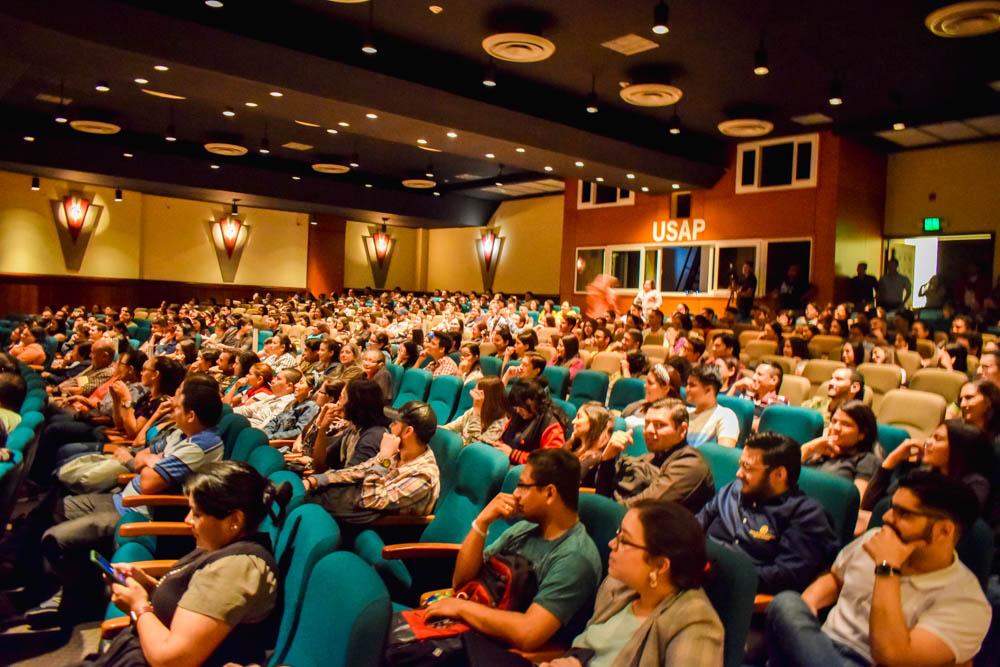 Desde las 6:00 pm decenas de estudiantes de la USAP, se han congregado en el auditorio Jorge Emilio Jaar, para disfrutar de esta velada artística.