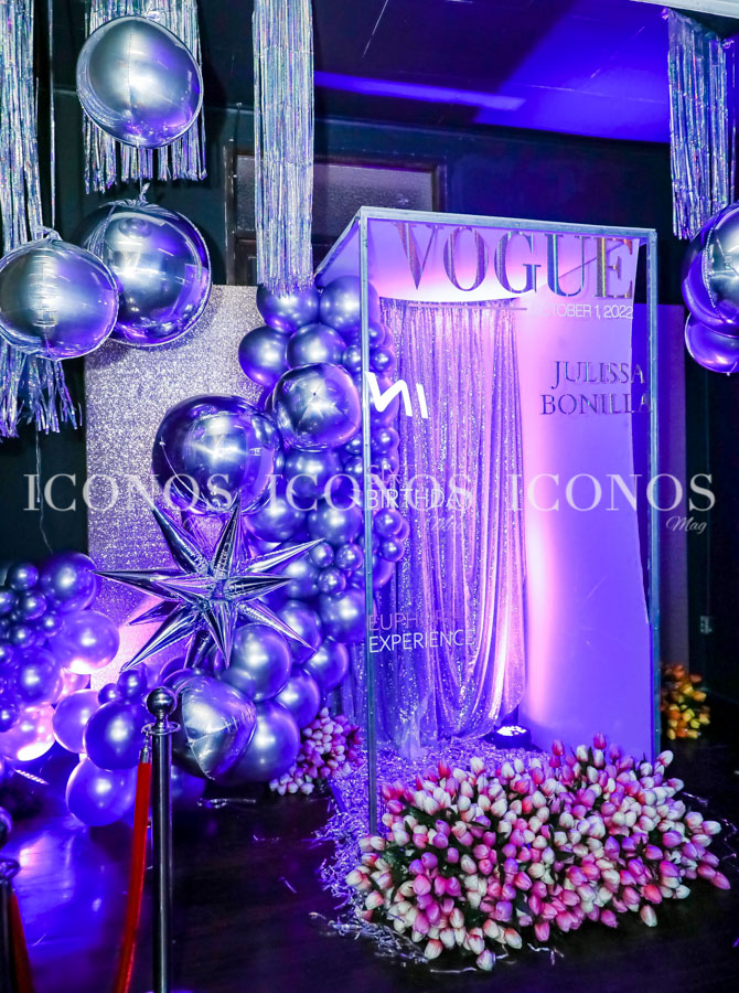 En cuanto a la decoración, cientos de globos golden, cortinas, cristales y lienzos en tonos silver y magenta crearon el espectacular ambiente.