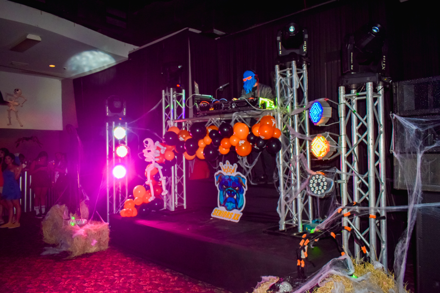 El ambiente fue adornado con variedad de detalles como telarañas, momias, brujas, globos en tono negro y calabaza y los infaltables efectos led en tonos multicolores.