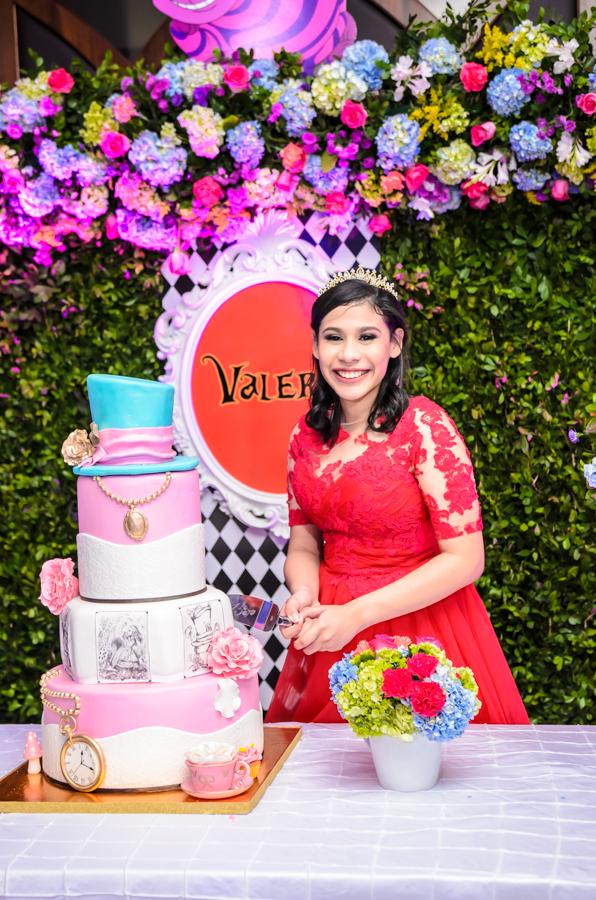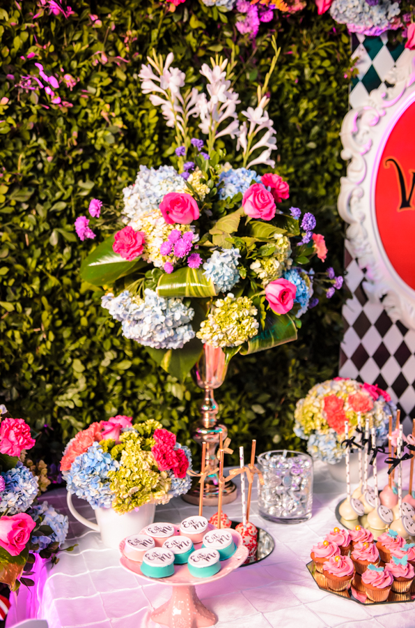 La event planner Marcela Cuevas, hizo realidad los anhelos de Leny Pineda creando el mundo decorativo de Alice in Wonderland.