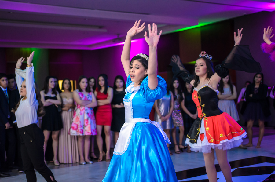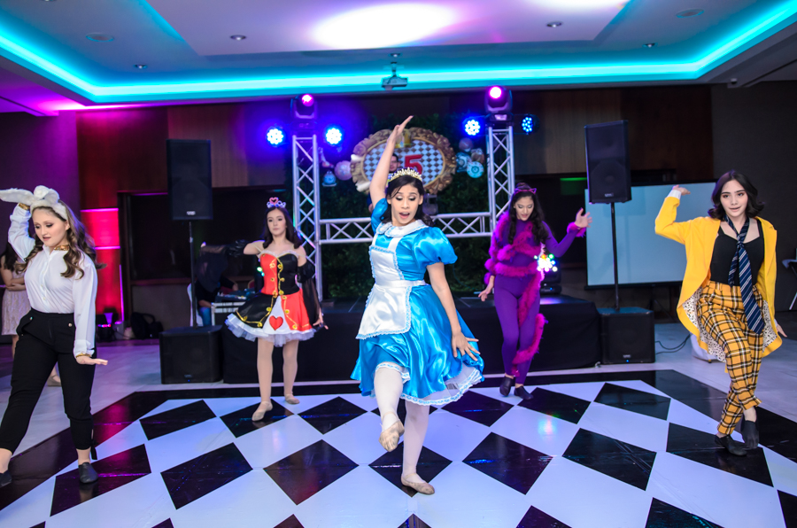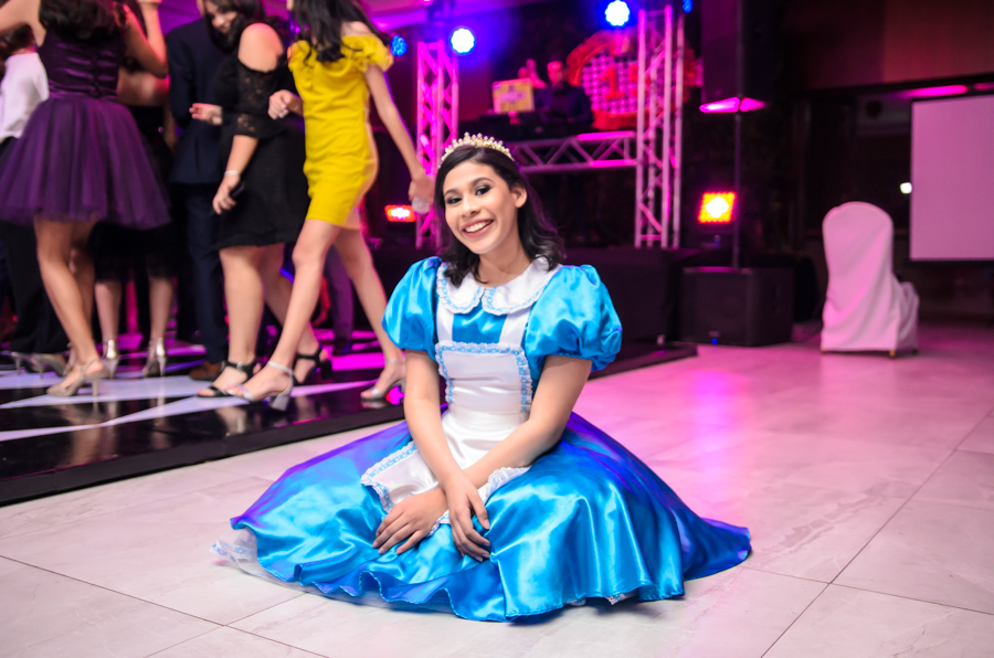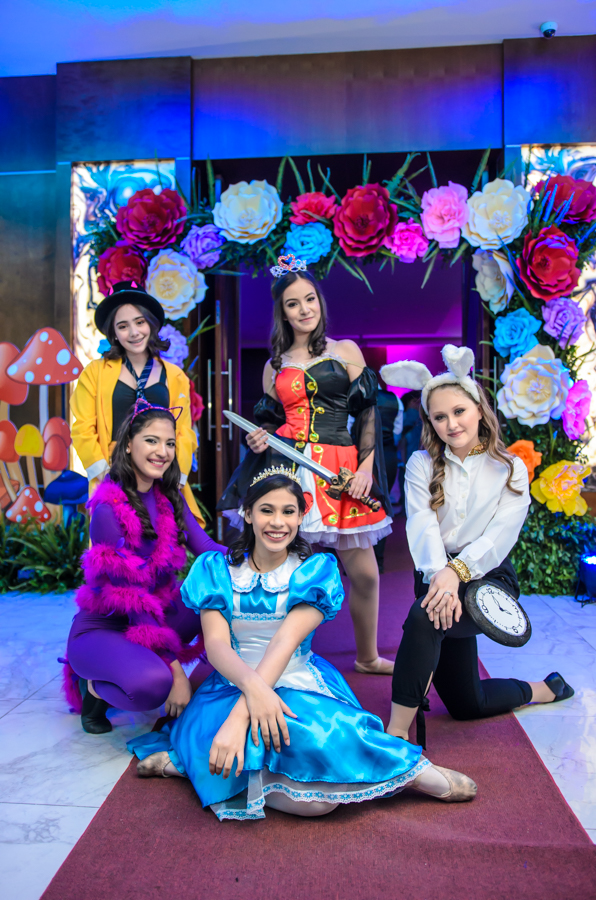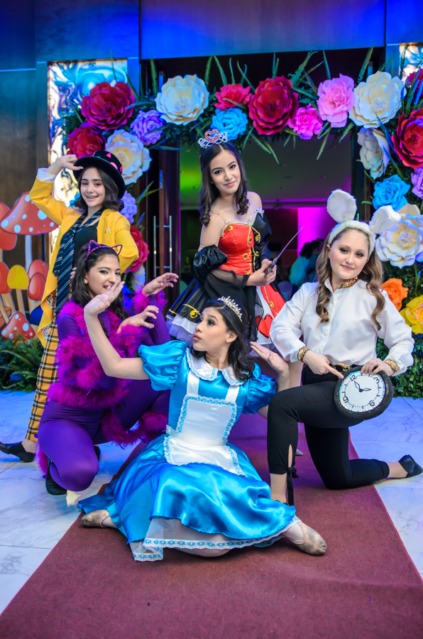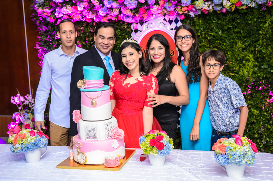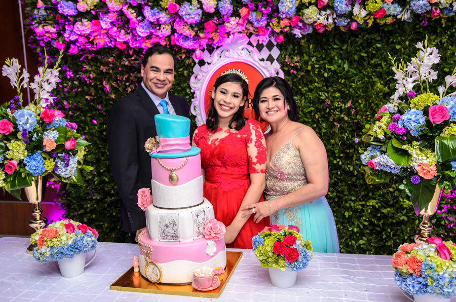 San Pedro Sula. La quinceañera Leny Valeria Pineda debutó en sociedad en una inolvidable celebración, bajo la temática de Alicia en el país de las maravillas.