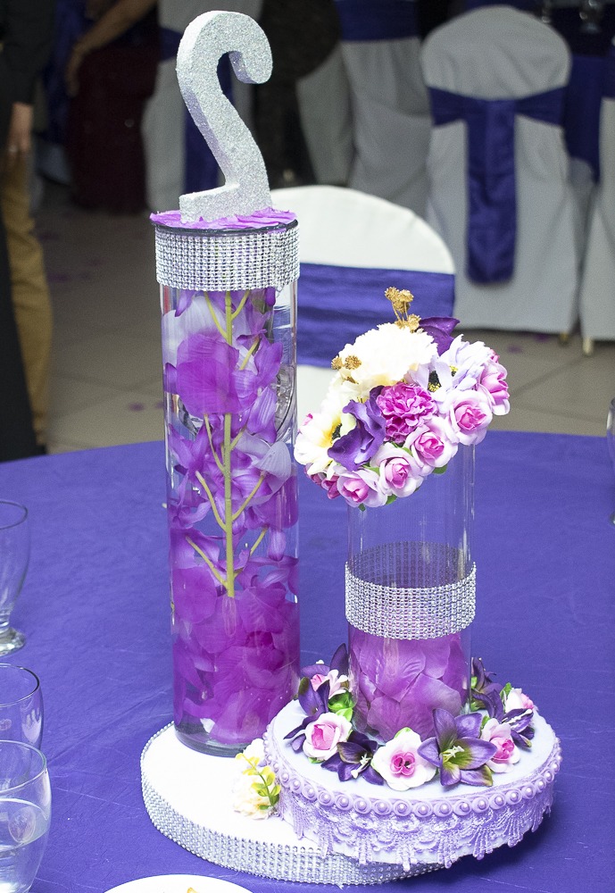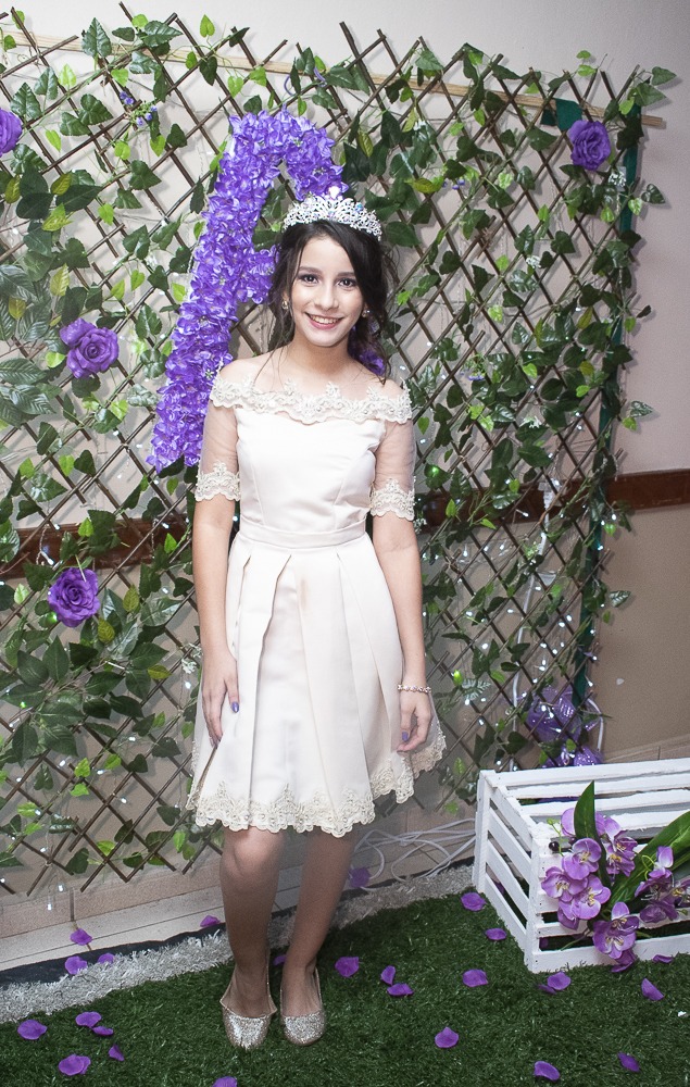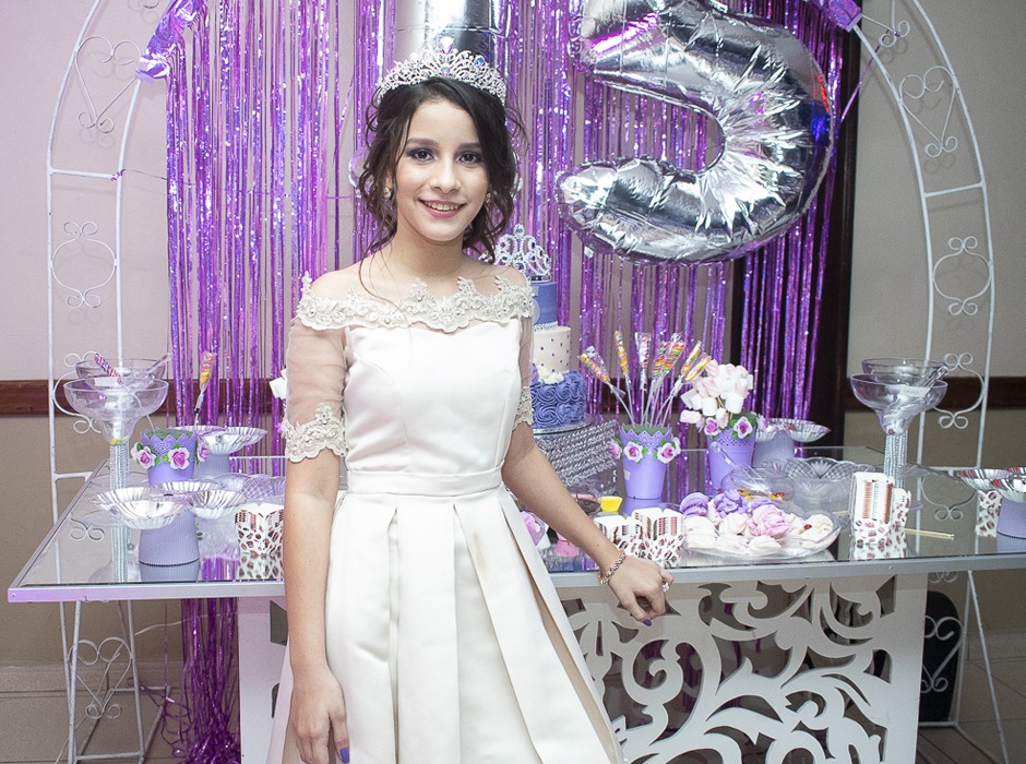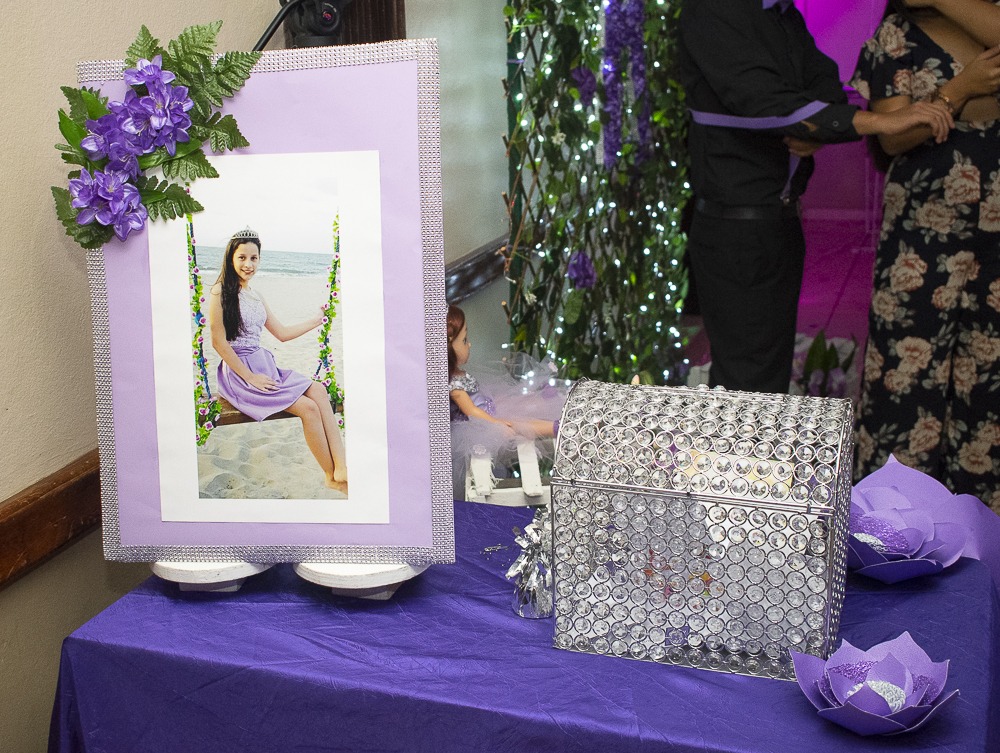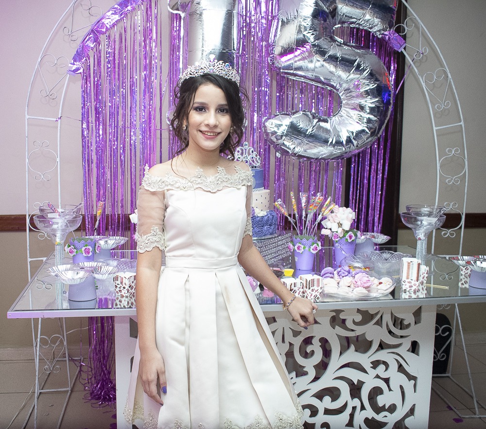 Los detalles en los quince años de Alexandra Nicolle Sabillón, se dispusieron a base de color violeta. Foto: Jorge Monzón