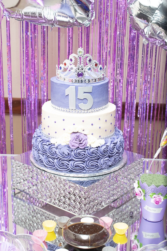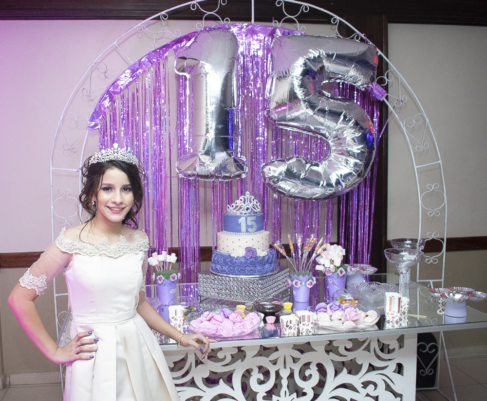 [/vc_column_text][thb_gap height=»30″][vc_column_text]Elegantes detalles en distintas tonalidades de violeta, se dispusieron por todo el lugar. Asimismo, un candy bar con variedad de delicias dulces, se colocó a un costado de la estancia.No podía faltar la tarta de cumpleaños, un llamativo pastel elaborado en tres niveles, con detalles y motivos en color violeta, que conmemoraban la nueva etapa de vida de la agasajada.[/vc_column_text][thb_gap height=»30″][thb_image image=»46275″][vc_column_text]