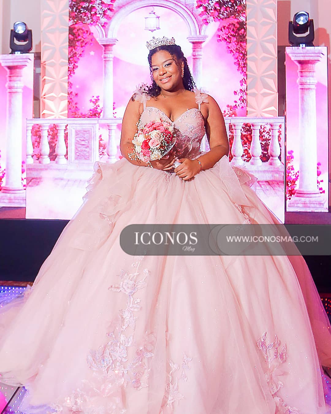 Nany ha lucido una vestido de la boutique Xiomaras Fashion. El diseño evoca un aire de princesa moderna con un acabado flawless que resalta su belleza.
