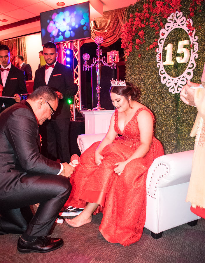 Además, sus seres queridos conformaron el cortejo y portaron el anillo, la tiara y las zapatillas.