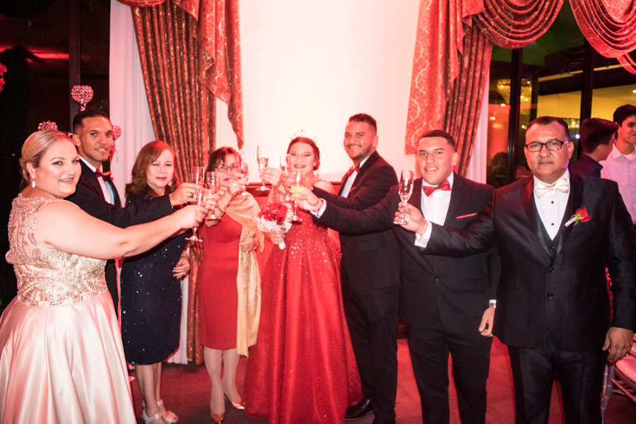 Luego de la ceremonia y entrada de la quinceañera, los convidados disfrutaron de una amena celebración y cena.