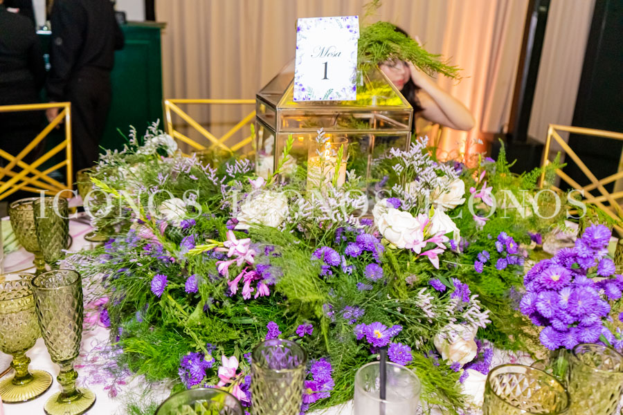 La estancia se ha decorado con wisterias de botánica permanente, limonario, rosas blancas, aster y velas eternas con abundante follaje. Todo ha sido obra de la floral designer Jackeline Cabrera.