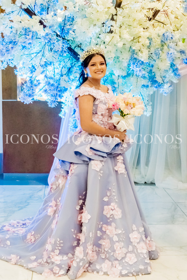 Marissa Jaslene ha lucido hermosa en su fiesta en el Club Hondureño Árabe. Para ese día tan especial, se robo el show con un lindo vestido corte princesa de amplia falda y apliques de flores 3D en tono azul cielo. Fue adquirido en una boutique de Los Ángeles, California.