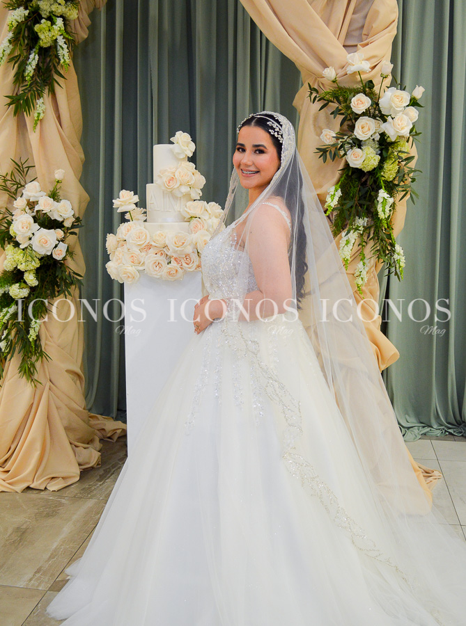 El peinado con ondas acompañado de un tocado con pedrería brillante y un velo capilla by Gabriela Cardona, han dado el toque perfecto a la novia.