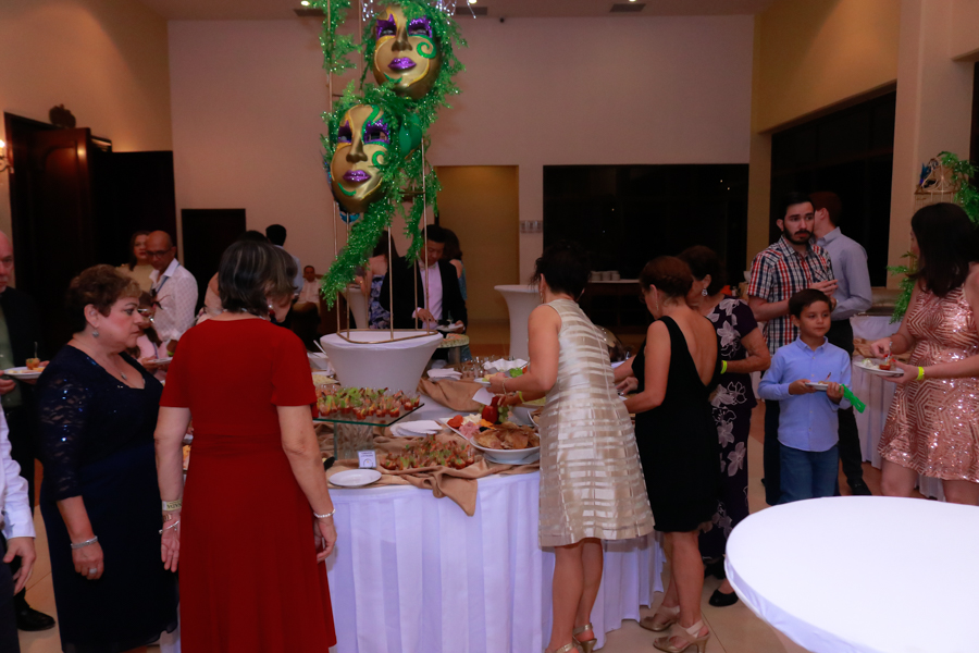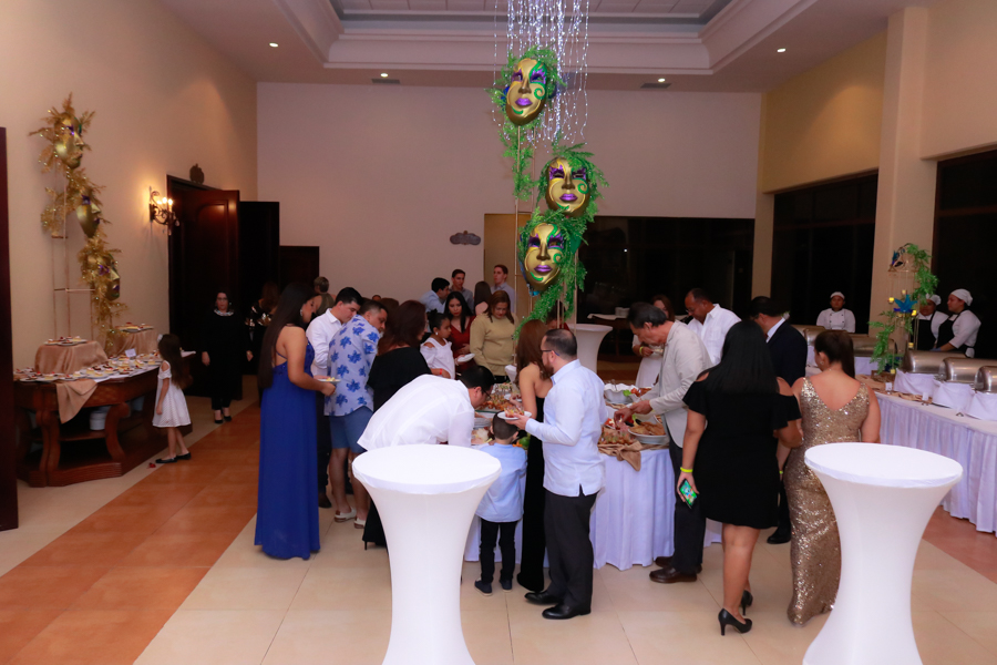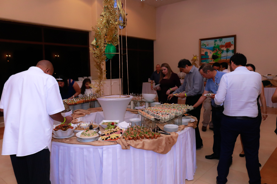 A las 9.00 pm, ya toda la gente disfrutaba de las infinitas atenciones y los ilimitados manjares y licores. En bufé contuvo lo mejor de la cocina internacional, árabe y decembrina; mientras que el bar, lo mejor en cócteles, ron y whisky.