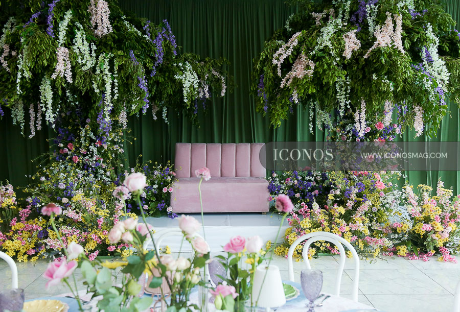Las rosas pink, lisianthus, claveles, limonium, hortensias, glicinias y vasto follaje han conformado el ambiente natural que ha encantado a los presentes.