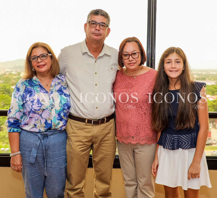 El salón El Mirador ha sido engalanado con sobriedad para el convite familiar donde no han faltado las fotos y las congratulaciones para los orgullosos padres.
