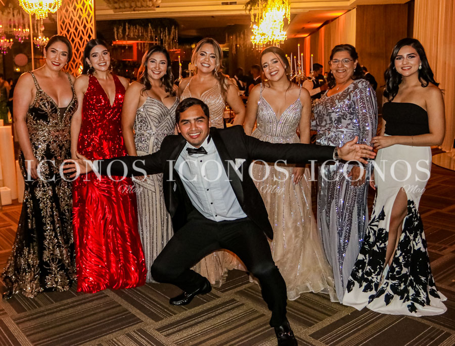 El techo ha sido engalanado con medias lunas repletas de benjamina, wisterias de botánica permanente y las siempre elegantes lámparas chandellier de cristal. Todo ha sido traído desde Tegucigalpa.