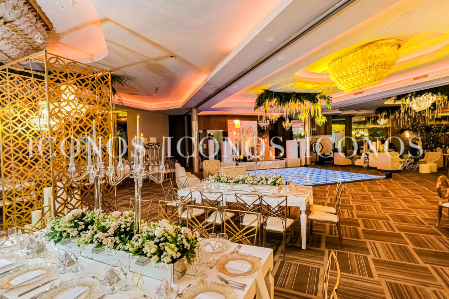 Finalmente, se ha dispuesto un área cóctel, bares y salas Chester de Servifiestas Capitolio y cajas metálicas golden en corte filigrana, que le han dado ese wow factor a la puesta en escena.