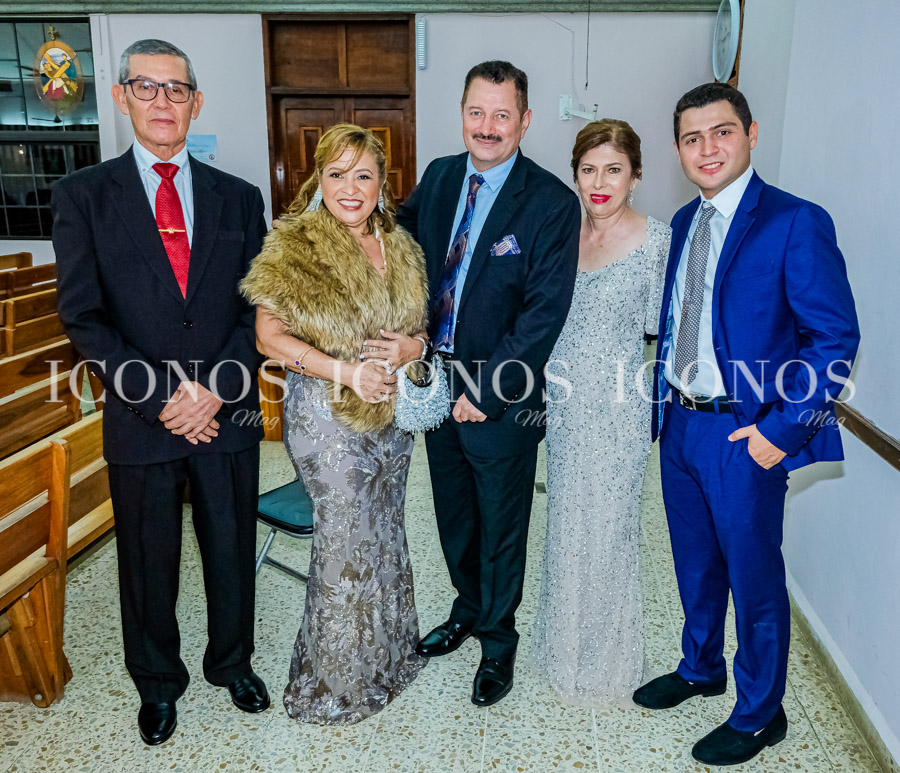 Nory Alvarado y Carlos Paz Sevilla y Elena Chinchilla y Martín López, quienes se han comprometido a encaminar a los recién casados en todo su matrimonio.