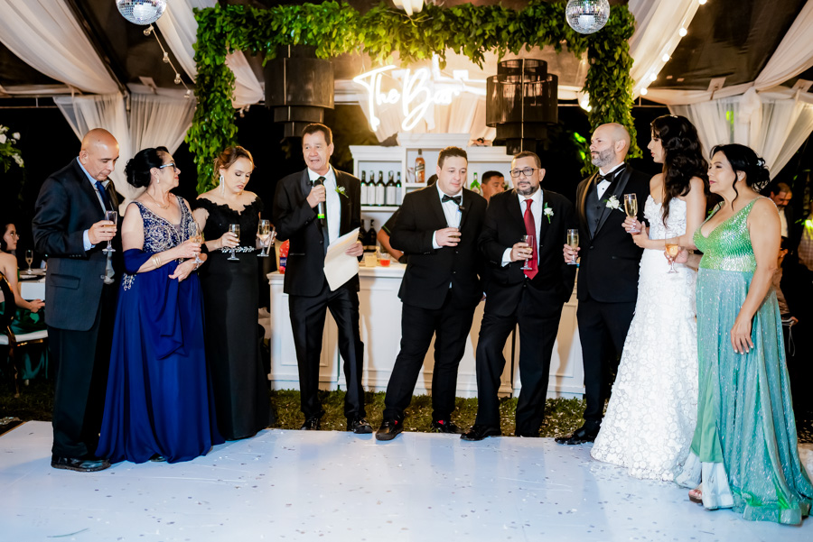 Los novios Cinthia Waleska Moreno y Mario Rolando Coello han compartido de un emocionante brindis, así como de los discursos de sus amados padres.