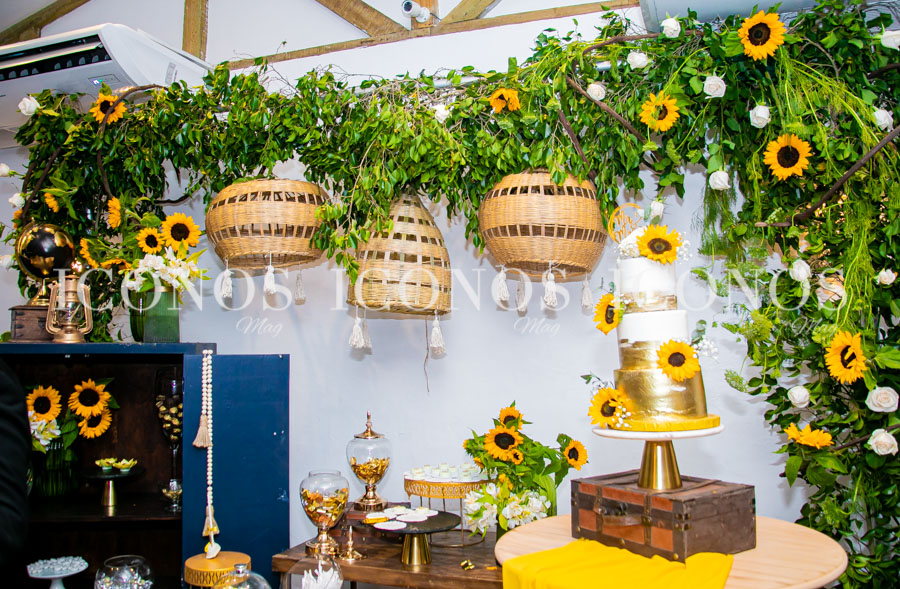 Los girasoles han sido protagonistas en hermosos ornamentos, creando un wow factor a la vista de los asistentes.
