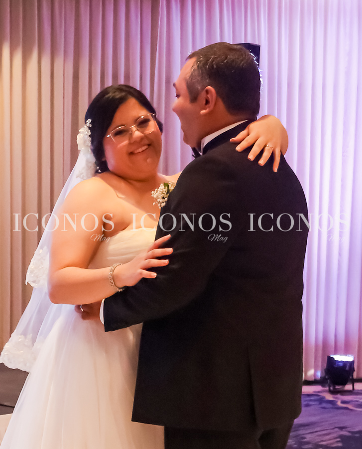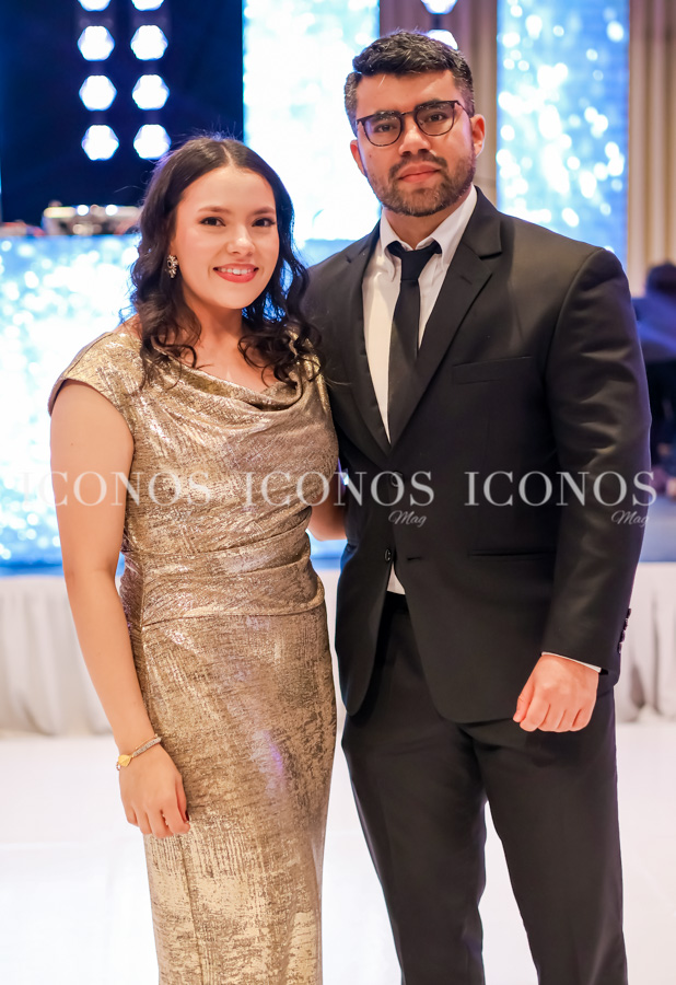 Al entrar al salón, Frances Diana Higgins Luttich y Donato José Marroquín Suazo han bailado con alegría la canción Solamente una vez de Andrea Bocelli.
