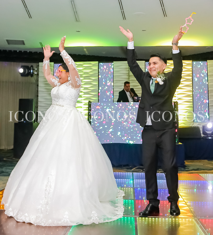 Glenda & Juán han arribado a la recepción bailando Thunderstruck de la banda de rock AC/DC.