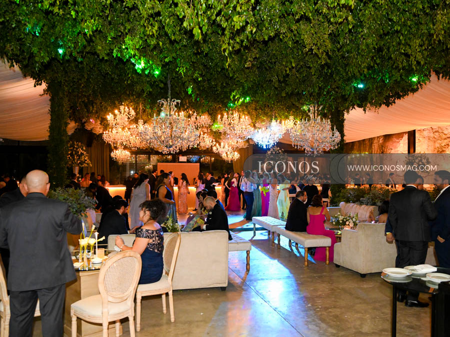 La fiesta continuaba al llegar el ocaso en el cotizado Invernaderos del Trigo, un espacio transformado en una fantasía primaveral por la wedding planner Danielle Kluck.