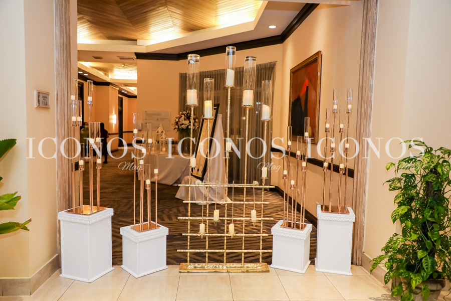 Allí ha sido la elegante recepción. Para la ornamentación se ha elegido a William Ramos y a Mercedes García de la firma Idecora.
