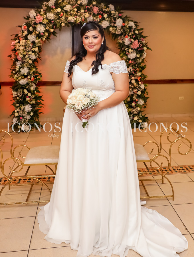 Para este día tan especial, la novia ha lucido un vestido estilo princesa con detalle de encaje. El novio le ha apostado a un smoking clásico color negro, luciendo elegante.