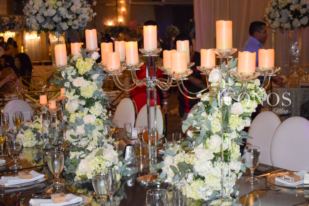 En cuando a la producción ornamental, la diseñadora floral Jackeline Cabrera creó una fantástica propuesta de mucho follaje, burbujas de vidrio con velas, exuberantes arreglos primaverales y un woao factor que encantó a todos.