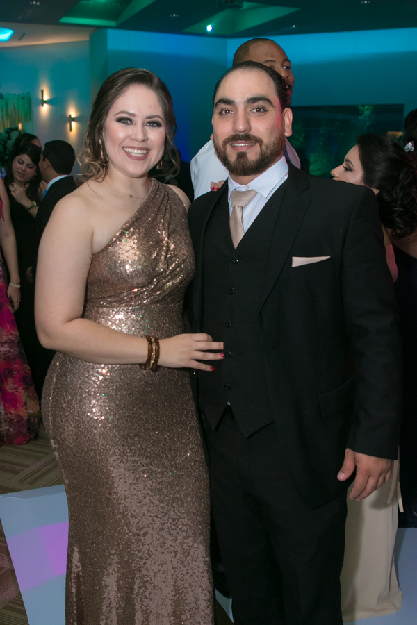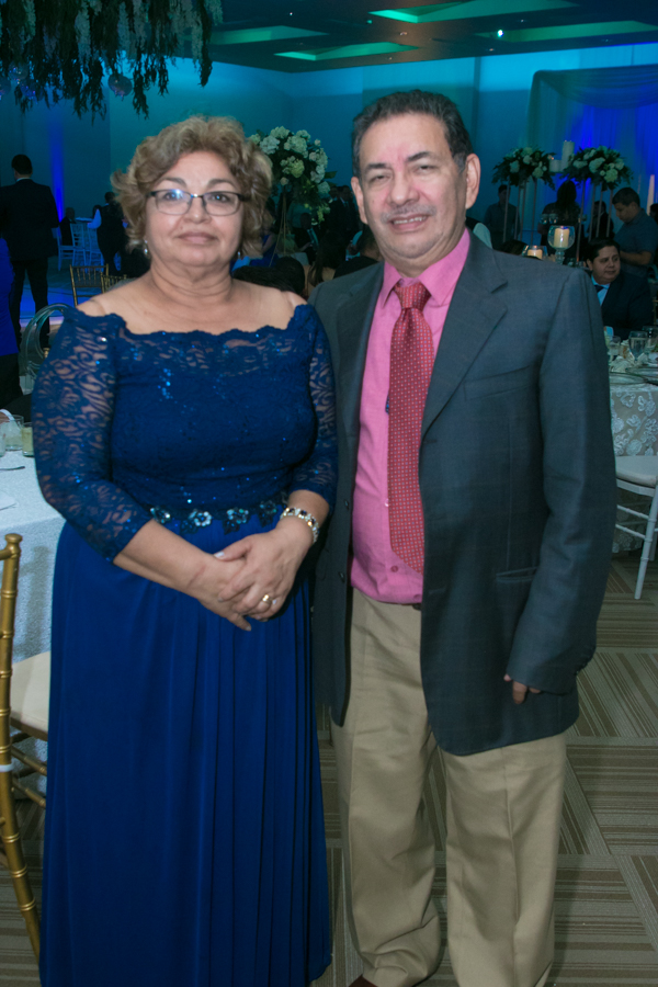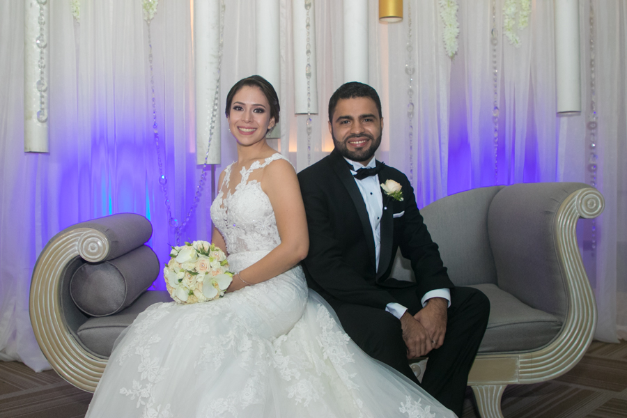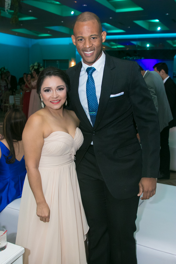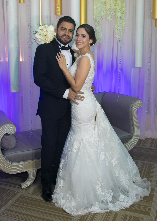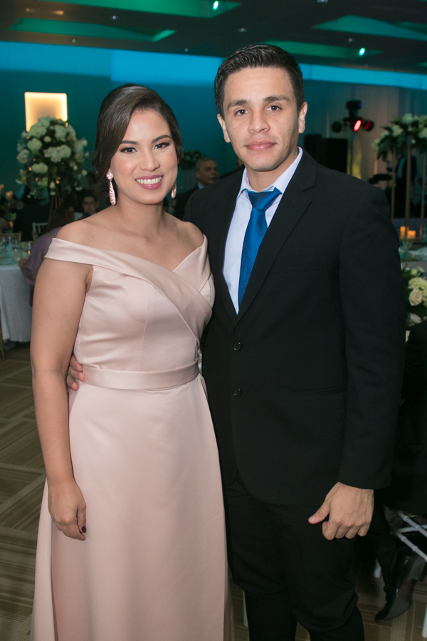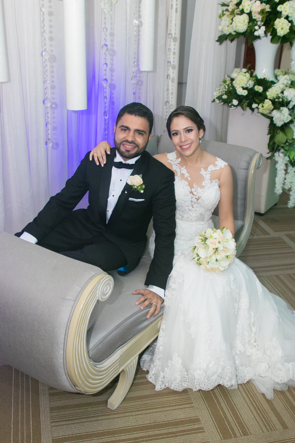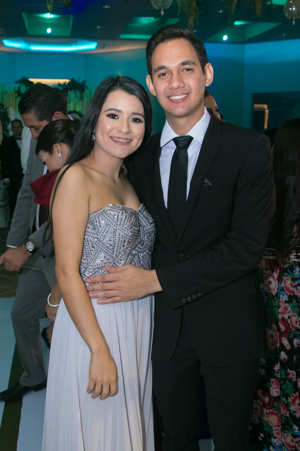 Ella, ataviada con un Pronovias de España. Él, de riguroso tuxedo. Así de elegantes y sumamente felices, reciben la bendición nupcial tras cerca de tres años de noviazgo oficial